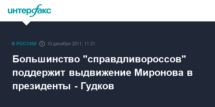 Большинство "справдливороссов" поддержит выдвижение Миронова в президенты - Гудков