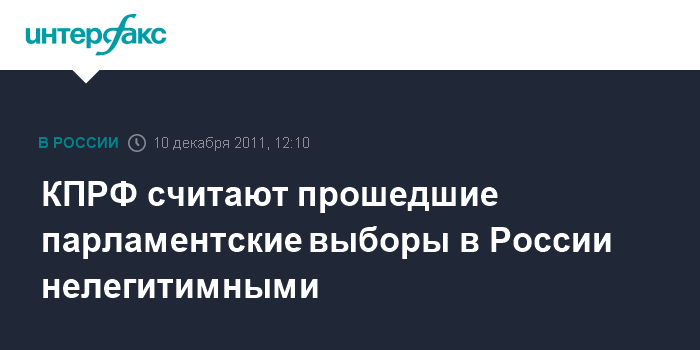 "КПРФ заявляет, что прошедшие выборы в Государственную Думу были нечестными и несвободными. Мы считаем их нелегитимными, как с моральной, так и с политической точек зрения", - говорится в заявлении президиума ЦК КПРФ, текст которого размещен на сайте партии.