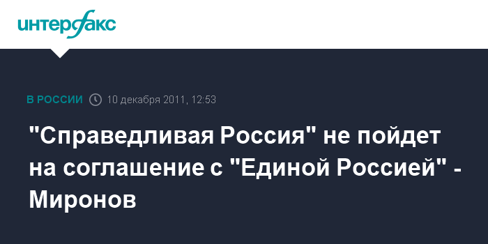 "Справедливая Россия" не пойдет на соглашение с "Единой Россией" - Миронов