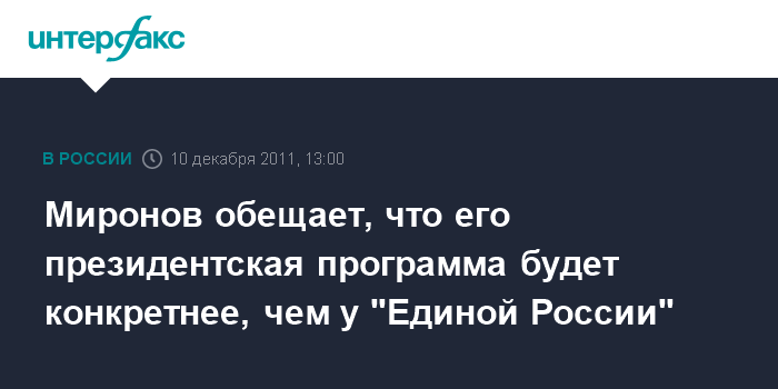 Миронов обещает, что его президентская программа будет конкретнее, чем у "Единой России"