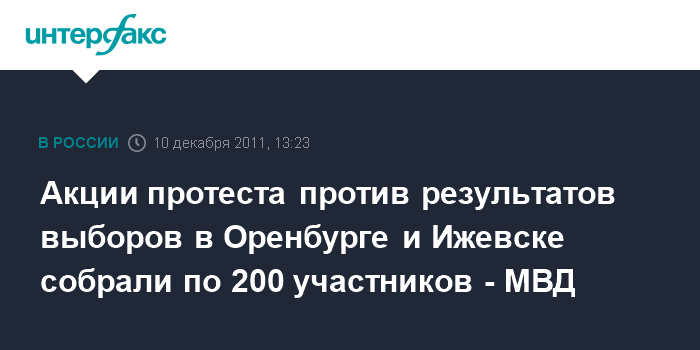 Акции протеста против результатов выборов в Оренбурге и Ижевске собрали по 200 участников - МВД