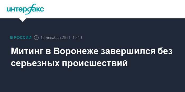 Воронеж. 10 декабря. INTERFAX.RU - Митинг в Воронеже под лозунгом "За честные выборы и против фальсификаций" продлился, как и планировали организаторы, два часа, передал корреспондент "Интерфакса".