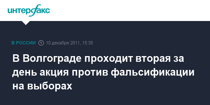 Волгоград. 10 декабря. INTERFAX.RU - В Волгограде проходит санкционированный митинг "За честные выборы", сообщает корреспондент агентства "Интерфакс-Юг".