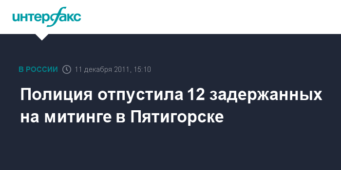 Пятигорск. 11 декабря. INTERFAX.RU - В Пятигорске (Ставропольский край) на задержанных в субботу в ходе митинга оппозиции против фальсификации выборов были составлены административные материалы, и их отпустили, сообщили агентству "Интерфакс-Юг" в пресс-службе ГУ МВД по краю.