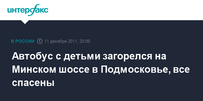 "Сегодня около 19:15 на 22-м км Минском шоссе во время движения загорелся автобус "Неоплан". В салоне автомобиля находились дети и их родители, которые возвращались из цирка в город Краснознаменск. В результате автобус сгорел полностью", - сообщил собеседник агентства.