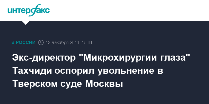Экс-директор "Микрохирургии глаза" Тахчиди оспорил увольнение в Тверском суде Москвы