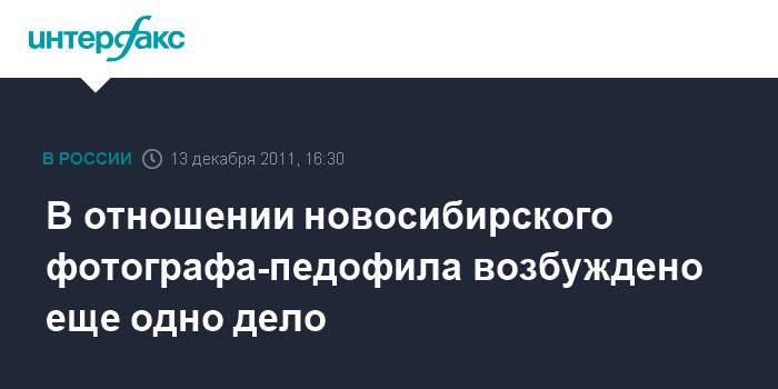 Следственное управление СКР по Новосибирской области сообщает, что в отношении 52-летнего фотографа возбуждено второе уголовное дело по статьям "половое сношение с лицом, не достигшим 14-летнего возраста" и "развратные действия".