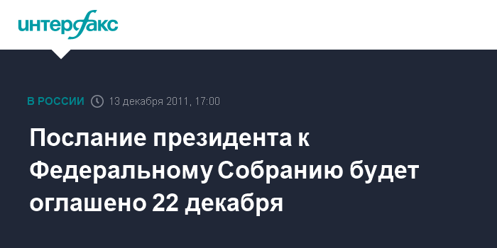 Послание президента к Федеральному Собранию будет оглашено 22 декабря