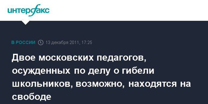 Двое московских педагогов, осужденных по делу о гибели школьников, возможно, находятся на свободе