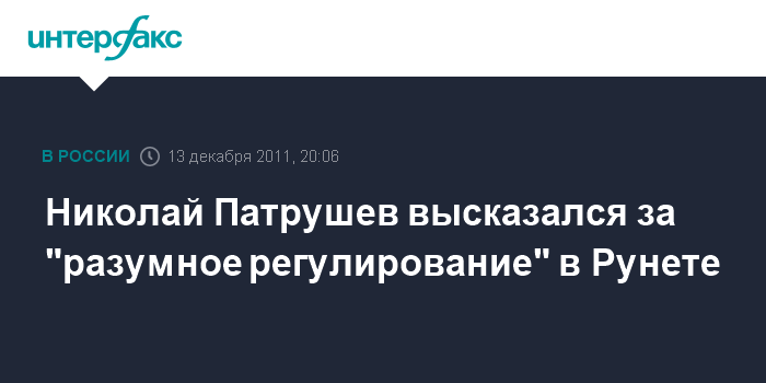 Москва. 13 декабря. ИНТЕРФАКС - Секретарь Совбеза РФ Николай Патрушев считает, что разумное регулирование Интернета в России возможно.
