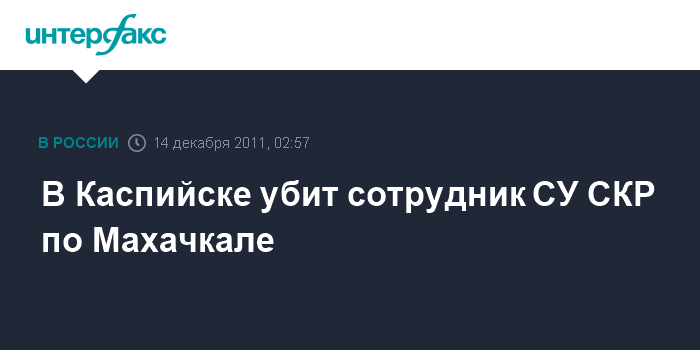 Ростов-на-Дону/Махачкала. 14 декабря. ИНТЕРФАКС-ЮГ - Исполняющий обязанности начальника отдела СУ СКР по Советскому району Махачкалы Арсен Гаджибеков убит в Каспийске в ночь на среду, сообщил агентству "Интерфакс - Юг" официальный представитель СУ СКР по Дагестану.