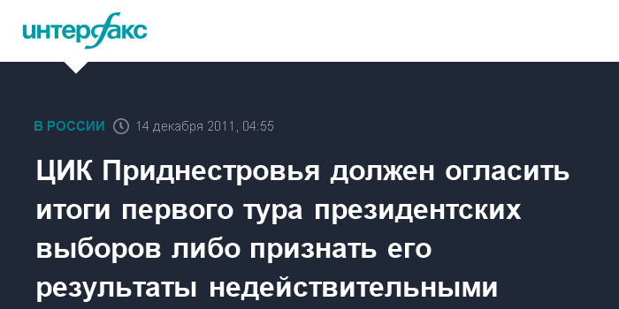 ЦИК Приднестровья должен огласить итоги первого тура президентских выборов либо признать его результаты недействительными
