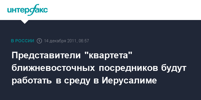 Представители "квартета" ближневосточных посредников будут работать в среду в Иерусалиме