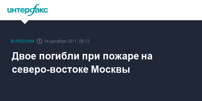 Москва. 14 декабря. INTERFAX.RU - Два человека погибли во вторник в результате пожара на северо-востоке Москвы, сообщил "Интерфаксу" начальник пресс-службы ГУ МЧС России по Москве Евгений Бобылев.