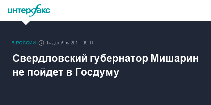 Свердловский губернатор Мишарин не пойдет в Госдуму