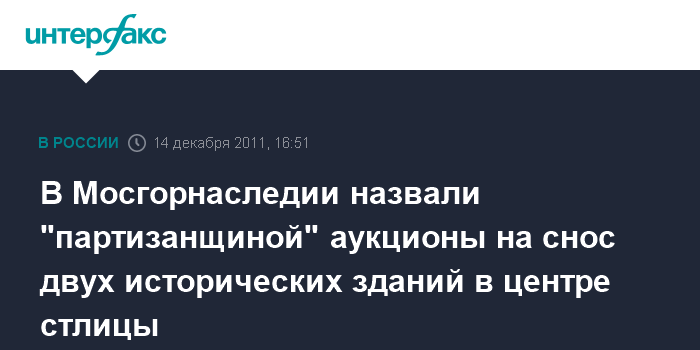 В Мосгорнаследии назвали "партизанщиной" аукционы на снос двух исторических зданий в центре стлицы