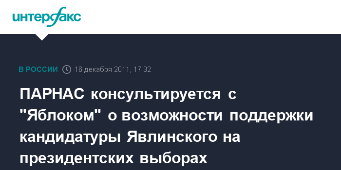 ПАРНАС консультируется с "Яблоком" о возможности поддержки кандидатуры Явлинского на президентских выборах