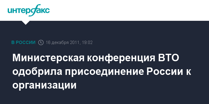Министерская конференция ВТО одобрила присоединение России к организации
