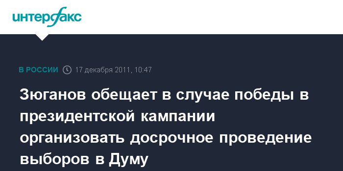 Зюганов обещает в случае победы в президентской кампании организовать досрочное проведение выборов в Думу
