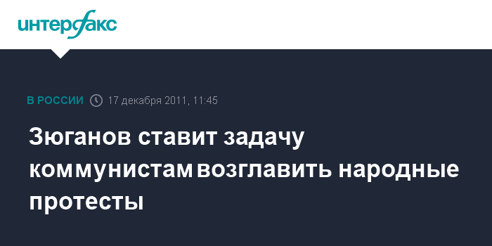 Москва. 17 декабря. INTERFAX.RU - Лидер КПРФ Геннадий Зюганов призвал российских коммунистов возглавить народные протесты против политики властей, предупредив об опасности "оранжевой революции".
