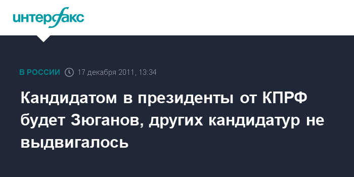 Кандидатом в президенты от КПРФ будет Зюганов, других кандидатур не выдвигалось