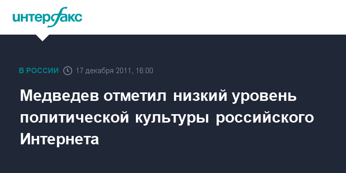 Медведев отметил низкий уровень политической культуры российского Интернета