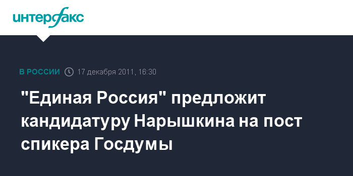 "Единая Россия" предложит кандидатуру Нарышкина на пост спикера Госдумы