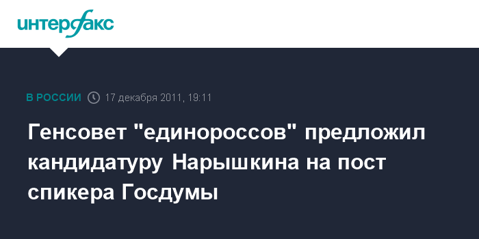Генсовет "единороссов" предложил кандидатуру Нарышкина на пост спикера Госдумы