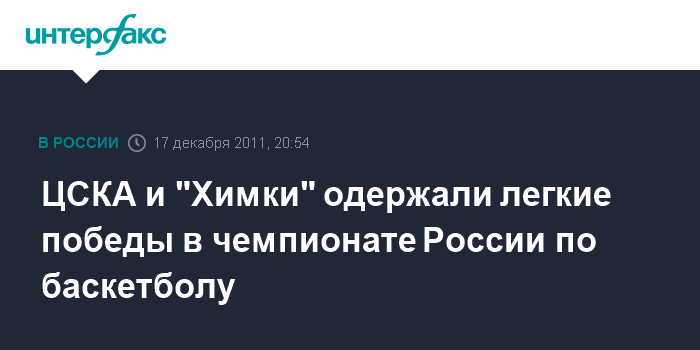 ЦСКА и "Химки" одержали легкие победы в чемпионате России по баскетболу