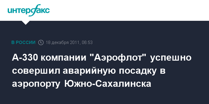 А-330 компании "Аэрофлот" успешно совершил аварийную посадку в аэропорту Южно-Сахалинска