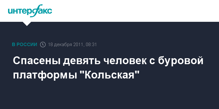Хабаровск. 18 декабря. INTERFAX.RU - Спасателям удалось спасти девять человек, которые находились на буровой платформе "Кольская", перевернувшейся в Охотском море.