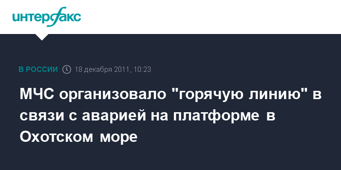 Южно-Сахалинск. 18 декабря. INTERFAX.RU - В связи с аварией буровой платформы в Охотском море работают телефоны "горячей линии" Главного управления МЧС России по Сахалинской области - 8 (4242) 72-99-99, 49-70-24.