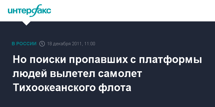 Но поиски пропавших с платформы людей вылетел самолет Тихоокеанского флота