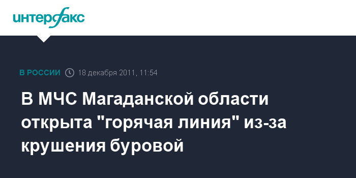 Владивосток. 18 декабря. INTERFAX.RU - При ГУ МЧС по Магаданской области открыта "горячая" телефонная линия для родственников тех, кто находился на борту буровой "Колькое", затонувшей в Охотском море. "По предварительной информации, на борту плавучей буровой платформы "Кольское", перевернувшейся 18 декабря 2011 года в Охотском море, находились жители Магаданской области", - говорится в сообщении колымского ГУ МЧС.