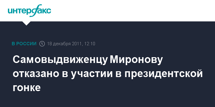 Самовыдвиженцу Миронову отказано в участии в президентской гонке