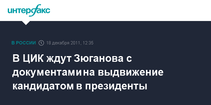 В ЦИК ждут Зюганова с документами на выдвижение кандидатом в президенты