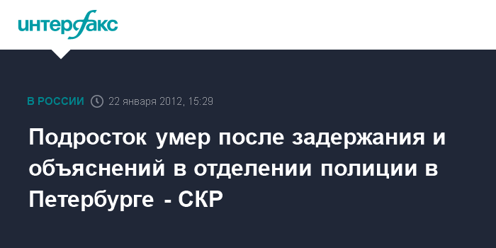 "По версии следствия, ночью 22 января 2012 года сотрудниками УМВД РФ по Невскому району Санкт-Петербурга по подозрению в свершении грабежа был задержан 15-летний подросток, который пытался скрыться с места происшествия. Поэтому сотрудники полиции применили к нему физическую силу", - говорится в сообщении пресс-службы СКР. Подросток был доставлен в отдел полиции, где у него взяли объяснение. После этого, в связи с ухудшением состояния здоровья задержанного, была вызвана "скорая помощь", в автомобиле которой он скончался по пути в больницу.