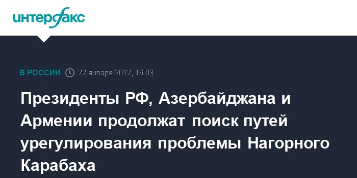 Президенты РФ, Азербайджана и Армении продолжат поиск путей урегулирования проблемы Нагорного Карабаха
