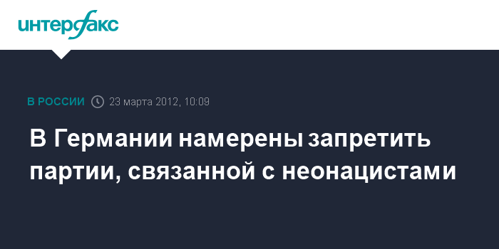 Берлин. 23 марта. INTERFAX.RU - В Германии попытаются запретить Национальную демократическую партию (НДП), которая связана с неонацистской ячейкой, в отношении которой выдвинуто обвинение в убийствах как минимум 10 человек, в основном иностранцев. Эти убийства были совершены в период между 2000 и 2006 годами.