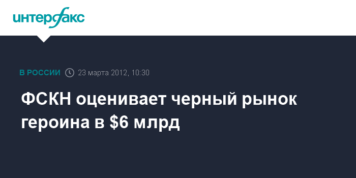 Москва. 23 марта. INTERFAX.RU - "Черный рынок" героина в России, по оценкам экспертов, составляет 6 млрд долларов, сообщил директор ФСКН РФ Виктор Иванов.