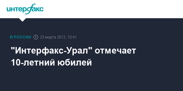 Екатеринбург. 23 марта. ИНТЕРФАКС-УРАЛ - Информационное агентство "Интерфакс-Урал", входящее в состав Международной информационной Группы "Интерфакс", отмечает свое 10-летие.