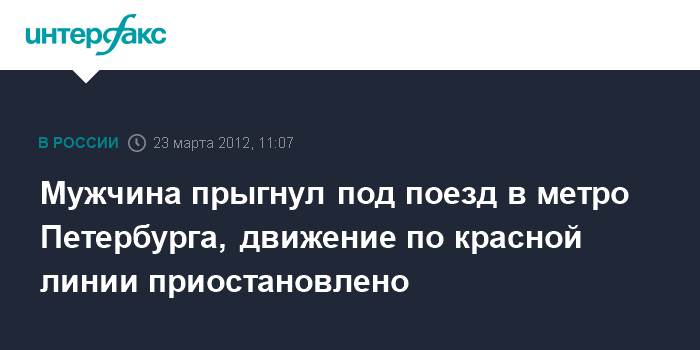 Санкт-Петербург. 23 марта. INTERFAX.RU - Мужчина прыгнул под поезд на станции петербургского метрополитена "Балтийская" в пятницу днем, сообщил "Интерфаксу" источник в правоохранительных органах.