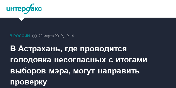 В Астрахань, где проводится голодовка несогласных с итогами выборов мэра, могут направить проверку