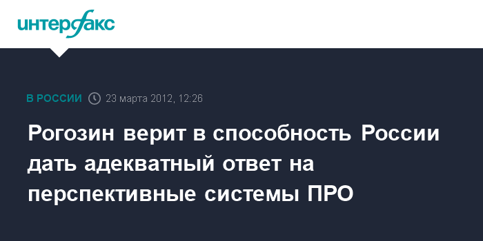 Рогозин верит в способность России дать адекватный ответ на перспективные системы ПРО