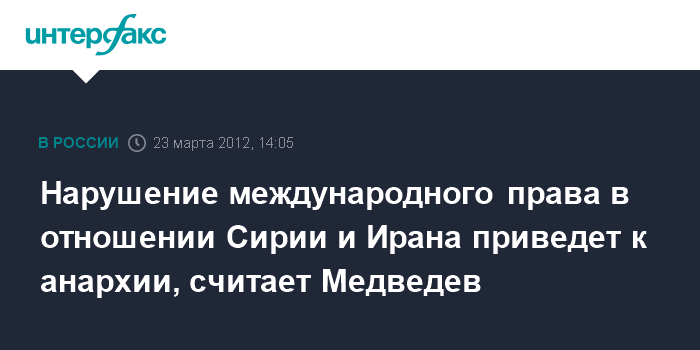 Нарушение международного права в отношении Сирии и Ирана приведет к анархии, считает Медведев