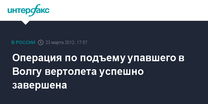 Операция по подъему упавшего в Волгу вертолета успешно завершена