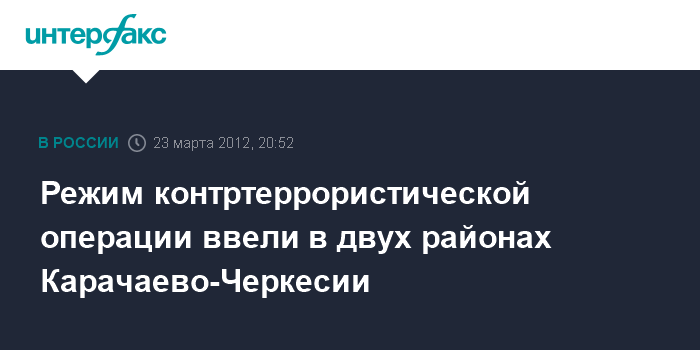 Черкесск. 23 марта. INTERFAX.RU - В двух районах Карачаево-Черкесии введен правовой режим контртеррористической операции (КТО) для пресечения деятельности членов бандгруппы Ислама Узденова, нападавшей на полицейских.