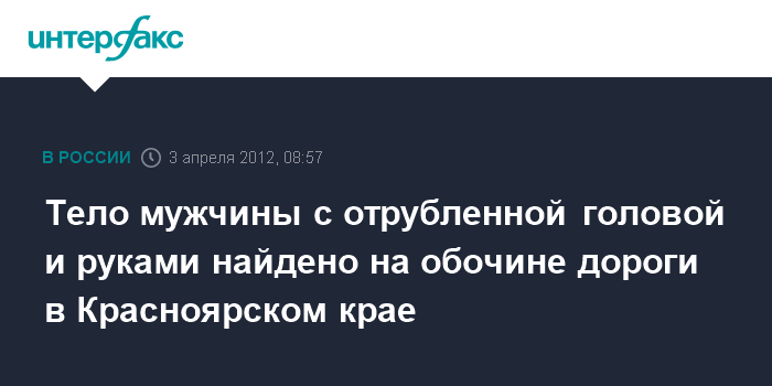 Тело мужчины с отрубленной головой и руками найдено на обочине дороги в Красноярском крае