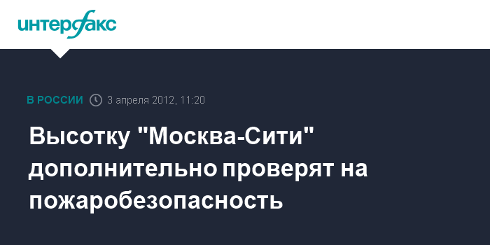 Высотку "Москва-Сити" дополнительно проверят на пожаробезопасность