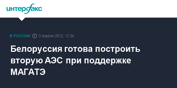Минск. 3 апреля. INTERFAX.RU - Президент Белоруссии Александр Лукашенко не исключает, что в будущем, при содействии МАГАТЭ в стране может быть построена вторая атомная электростанция.